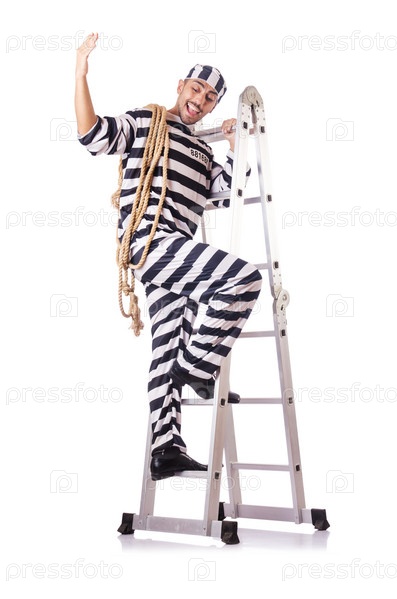 Осужденный преступник в полосатой форме