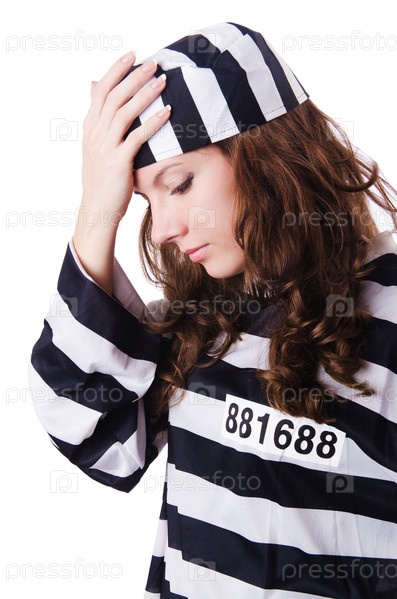 Осужденный преступник в полосатой форме