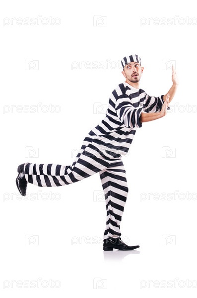 Осужденный преступник в полосатой форме