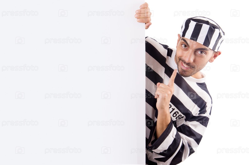 Осужденный преступник в полосатой форме