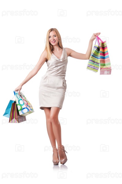 Привлекательная женщина после шопинга