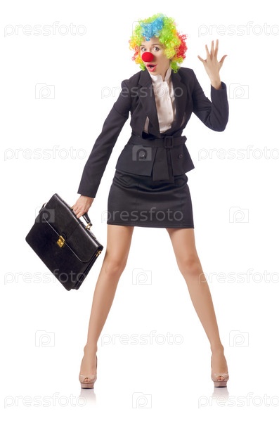 Женщина-клоун в деловом костюме