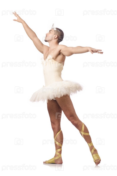 Мужчина в балетной пачке, изолированный на белом