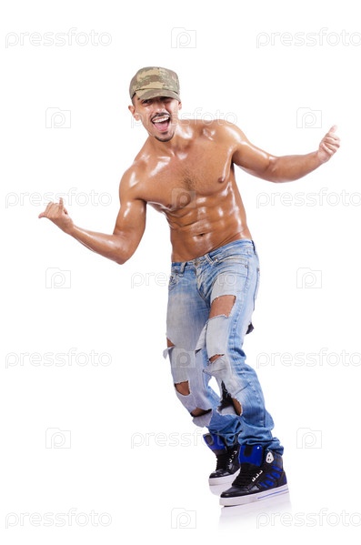 Мужчина танцует на белом фоне