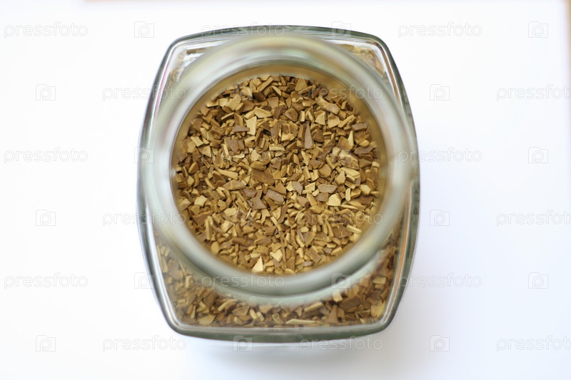 Растворимый кофе в банке на белом фоне