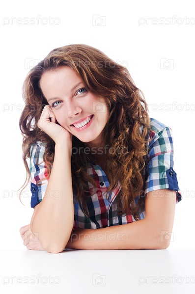 Счастливая студентка на белом