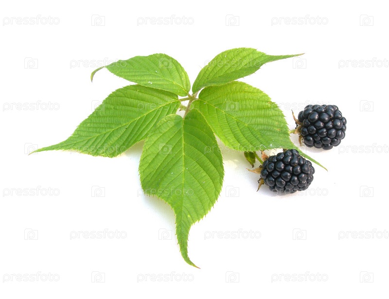 Ягоды ежевики с листьями на белом фоне