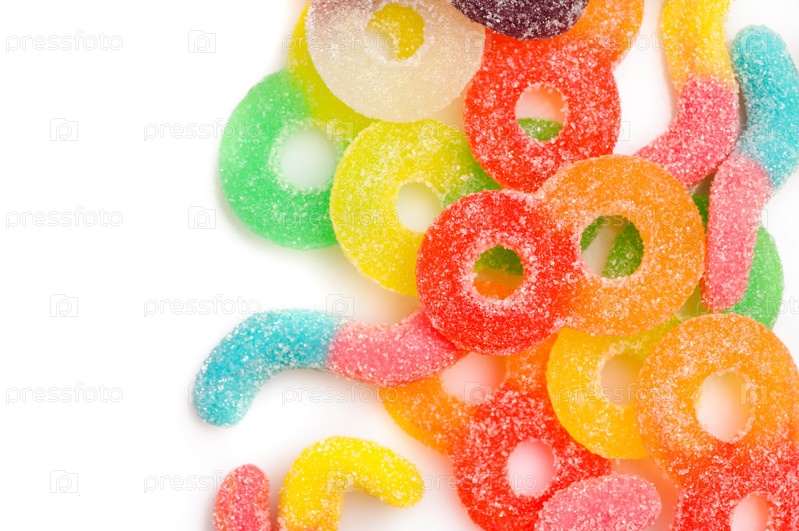 Жевательный мармелад на белом фоне