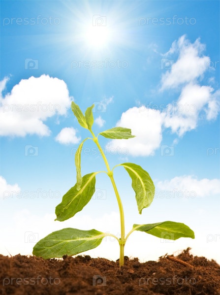 Зеленый росток на фоне неба