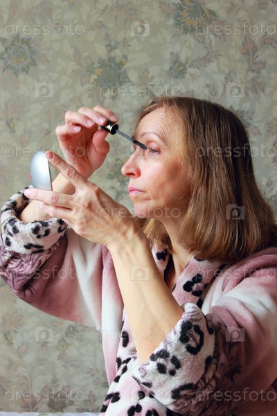 Женщина красит ресницы