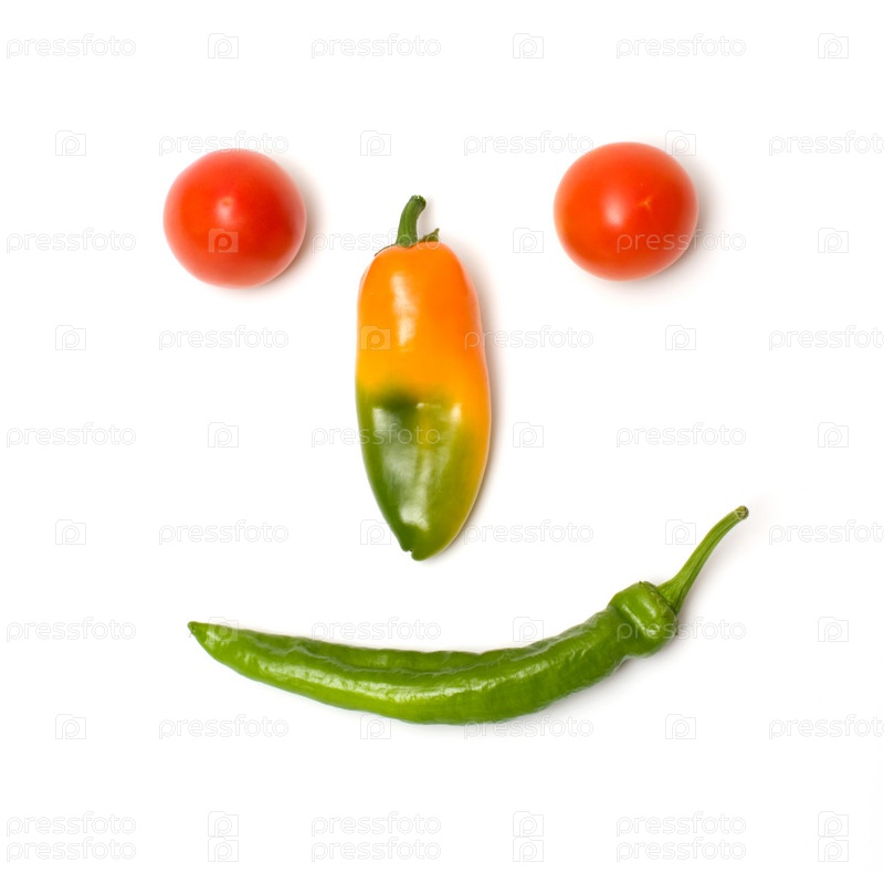 Лицо из свежих овощей на белом фоне