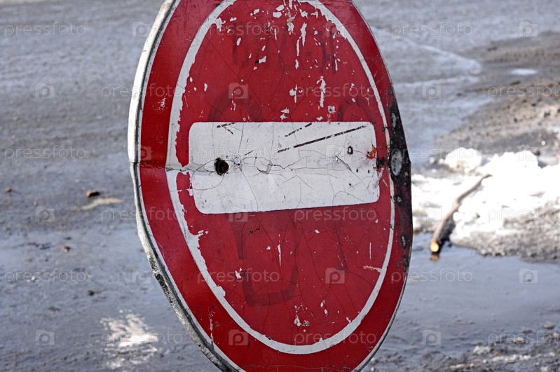 Старый красный дорожный знак "проезд запрещен"