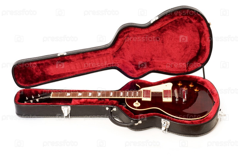 Электрогитара в чехле на белом фоне