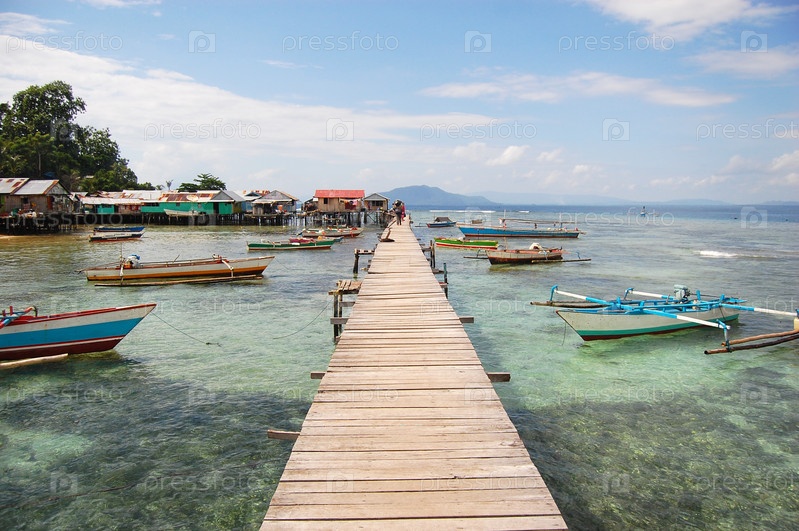 Длинный деревянный пирс и лодки