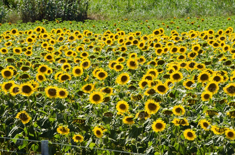 Поле подсолнечников в яркий летний день