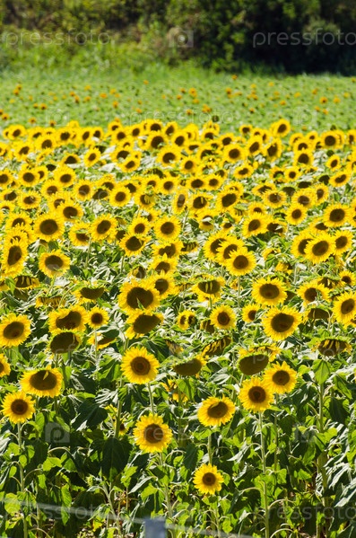 Поле подсолнечников в яркий летний день