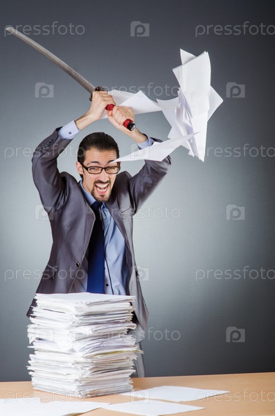 Мужчина с мечом и бумагами