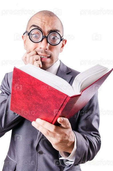 Смешной ботаник на белом фоне