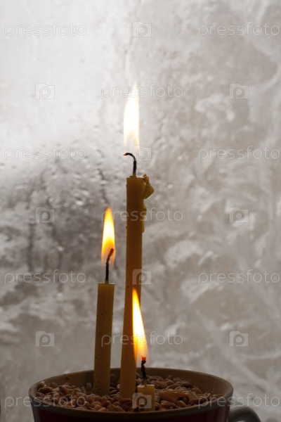Замороженное окно и свечи