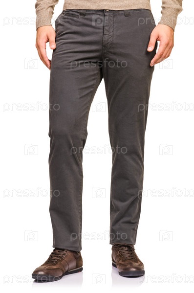 Концепция моды с брюками на белом фоне