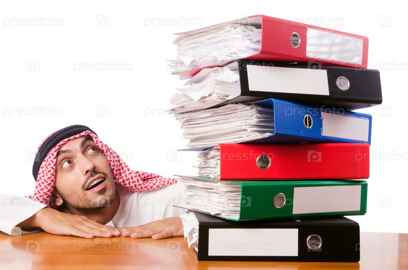 Арабский бизнесмен с папками на белом фоне
