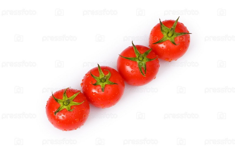 Ряд из красных помидор, на белом фоне