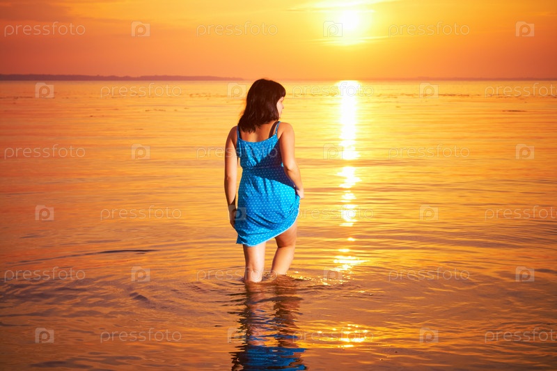 Молодая женщина входит в воду