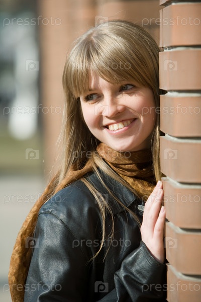 Молодая блондинка у стены
