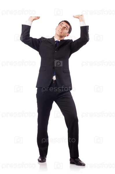 Молодой бизнесмен толкает что-то вверх
