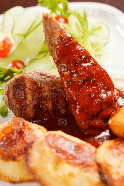 Мясо на гриле с картофелем