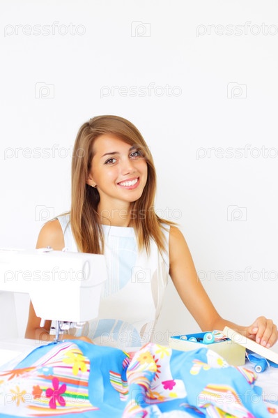 Девушка занимается шитьем