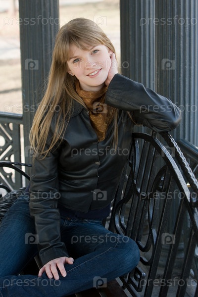 Девушка, сидящая на чугунной скамейке