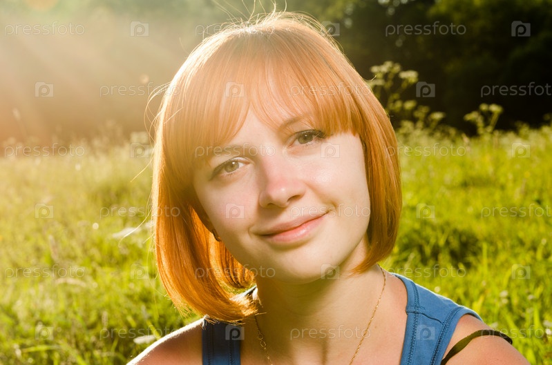 Рыжая женщина в теплых лучах солнца