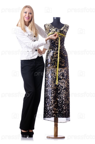 Молодая портниха на белом фоне