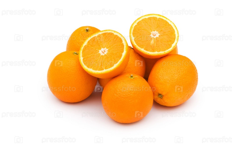 Горка апельсинов на белом фоне