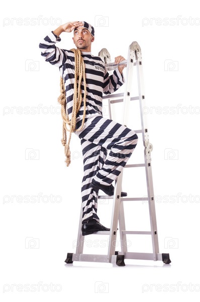Осужденный преступник в полосатой форме