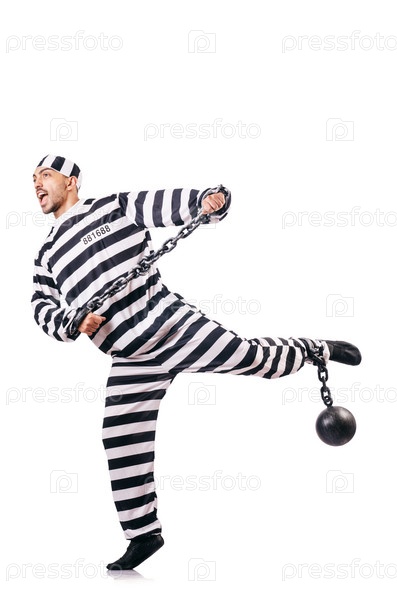 Осужденный преступник в полосатой форме