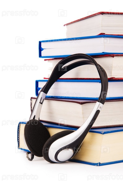 Понятие аудиокниги с наушниками на белом фоне