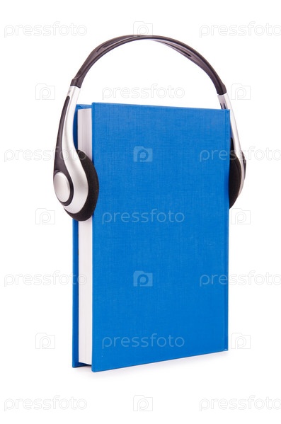 Понятие аудиокниги с наушниками на белом фоне