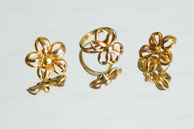 Кольцо и серьги с цветочным орнаментом