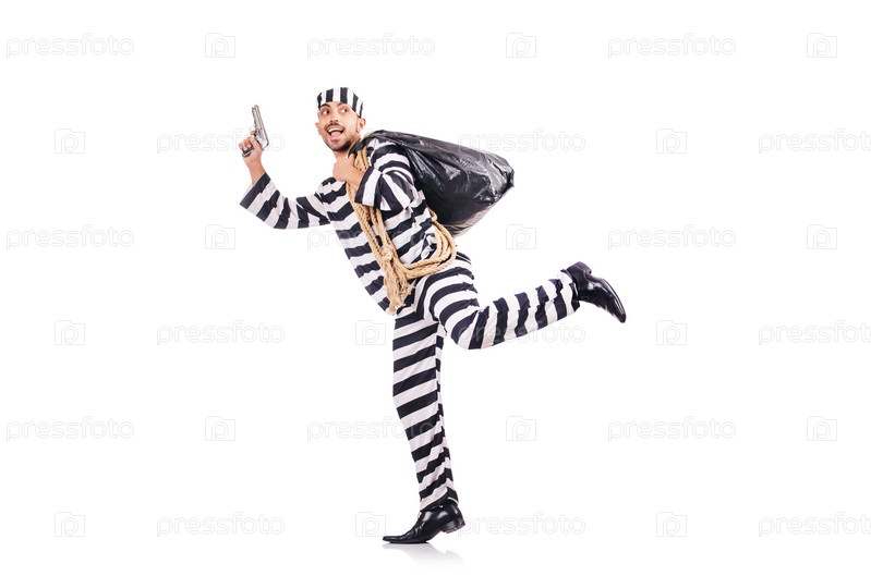 Осужденный преступник в полосатой форме