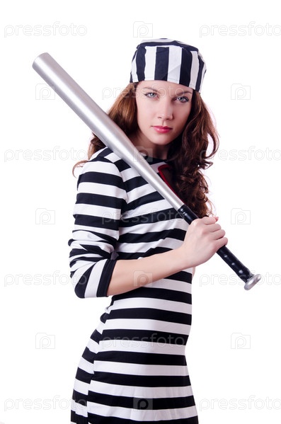 Осужденный преступник в полосатой форме