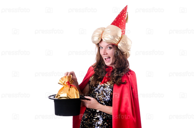 Женщина-маг, изолированная на белом