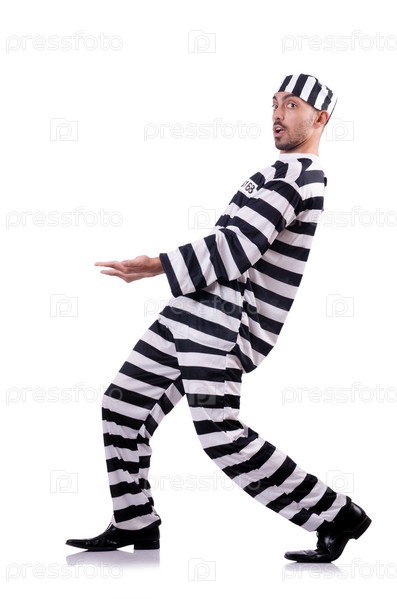 Осужденный преступник в полосатой форме