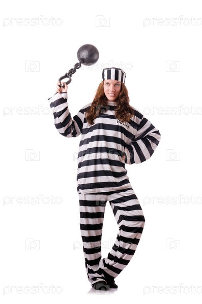 Заключенный в полосатой форме на белом фоне