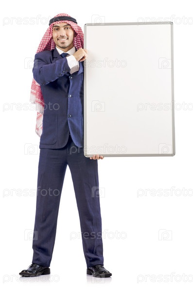 Араб с пустой доской для сообщения