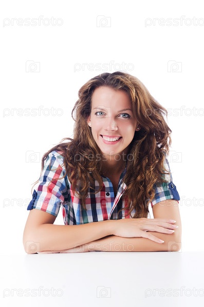 Счастливая студентка на белом