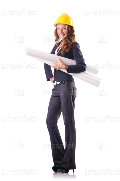 Строитель в каске на белом фоне