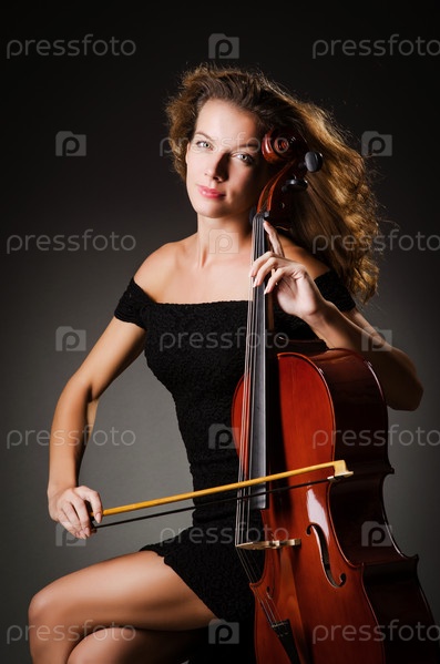 Женщина с виолончелью в студии
