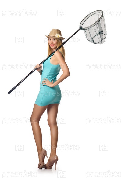 Привлекательная женщина с сачком